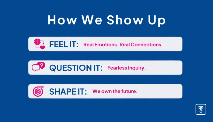 Of course, all these meetings and surveys would just be administrative noise if we didn’t have a value system that supported them. Three of our five core values, Feel It, Question It, and Shape It, are the basis behind our feedback loops: